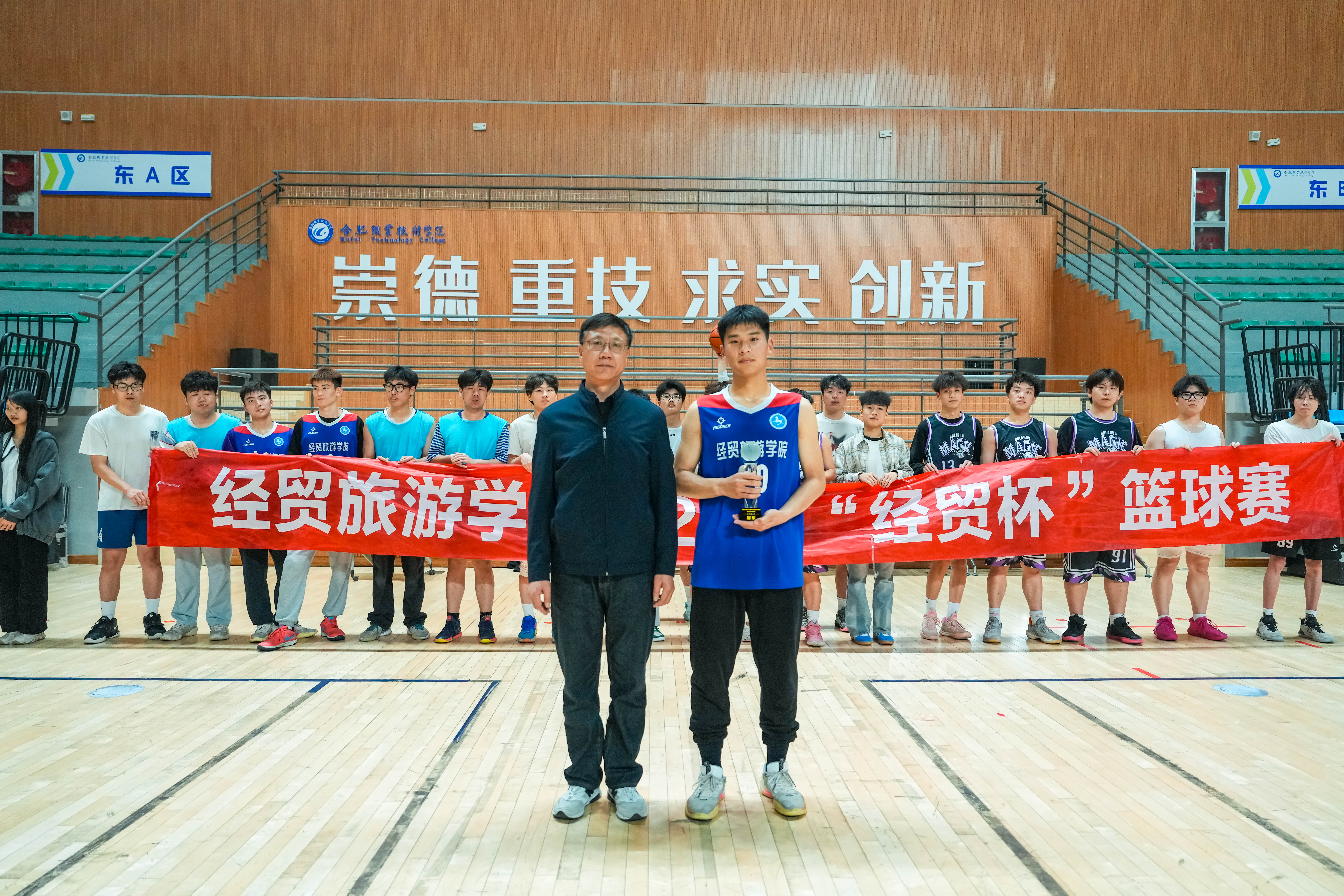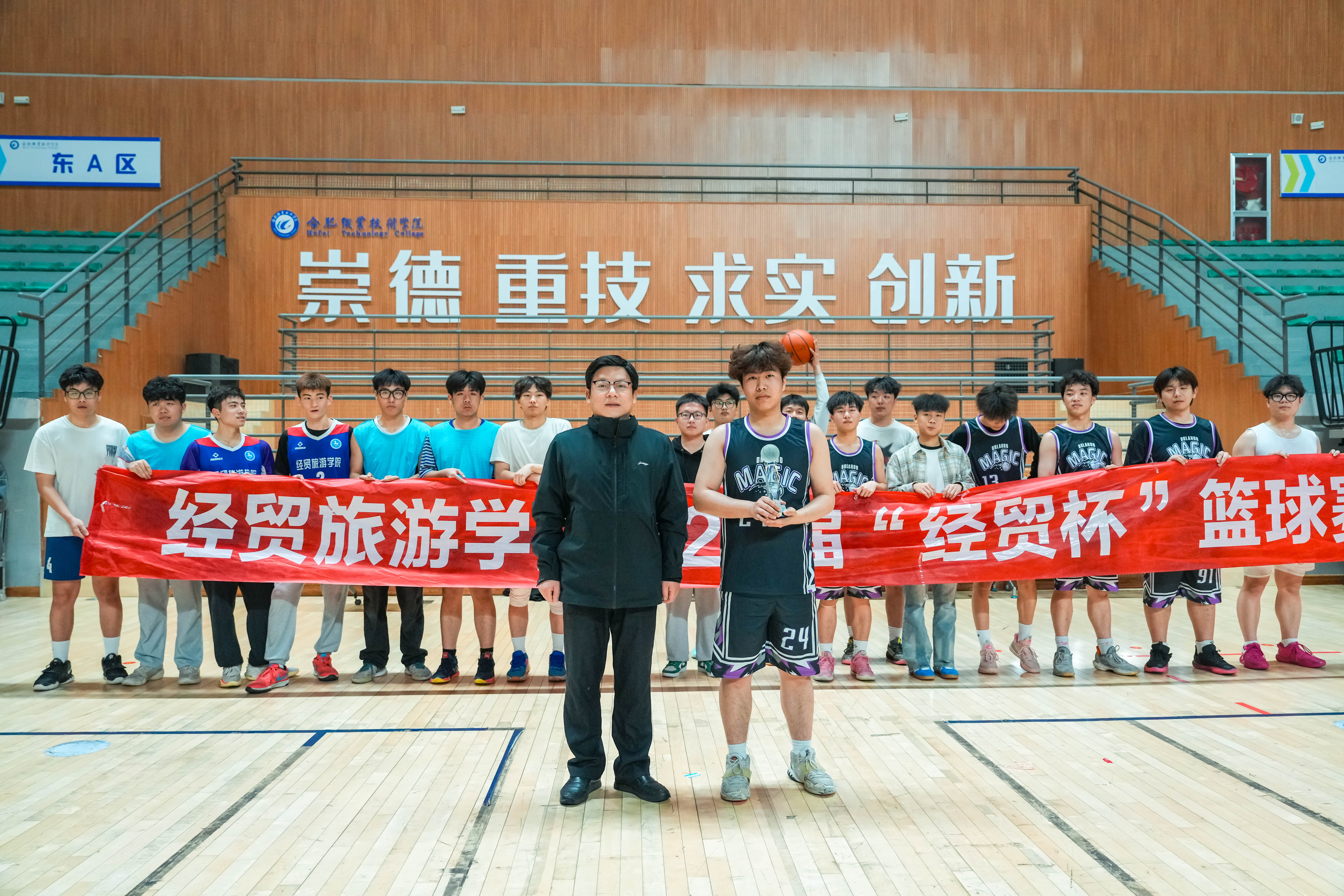 4月17日下午,2024年伟德体育官方网站“经贸杯”篮球赛在汇心湖校区体育馆圆满落幕。
