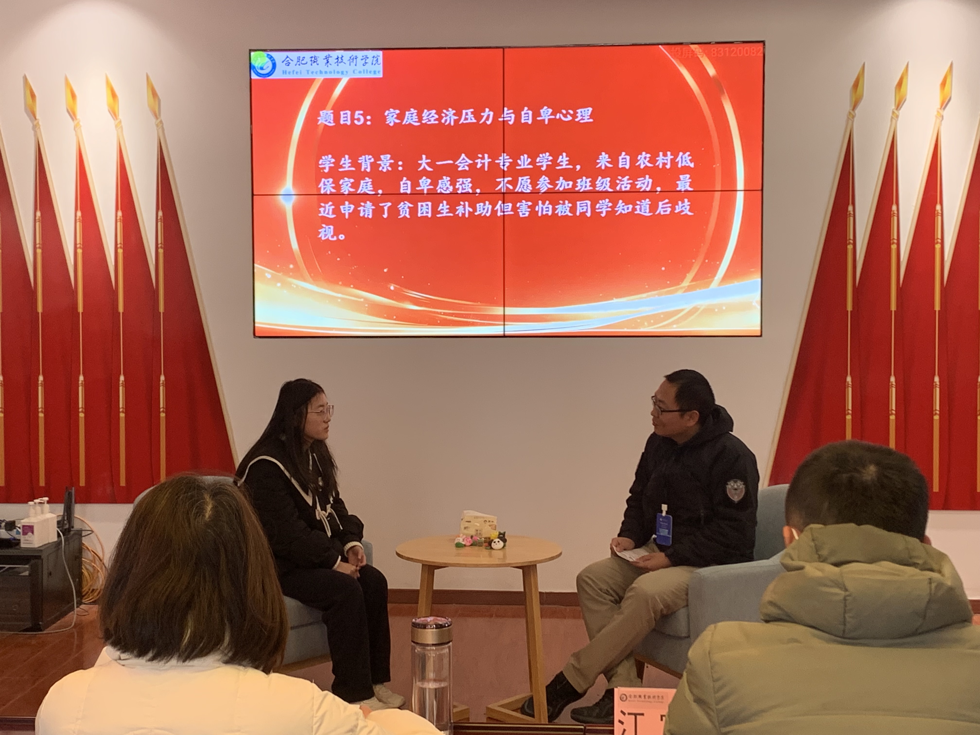 本次大赛紧扣高校辅导员日常工作核心,包含基础知识测试、案例研讨、谈心谈话三大竞赛模块,围绕员工“因专升本压力过大产生焦虑情绪““宿舍成员因作息差异引发冲突”“因自卑而不敢申请贫困补助”“创业与厌学价值冲突”等方面全面检验辅导员的理论功底和政策把握能力、问题分析能力、原因探究与解决方案能力,展现出辅导员在解决学业困难、心理危机、人际交往矛盾、就业困难等典型问题中扎实的专业知识和清晰的逻辑思维。情景模拟环节则还原了辅导员日常谈心谈话场景,辅导员们迅速进入角色,用共情的态度、专业的方法与“员工”沟通交流,灵活运用思想政治教育技巧化解矛盾,充分彰显了良好的沟通协调能力和应急处置能力。