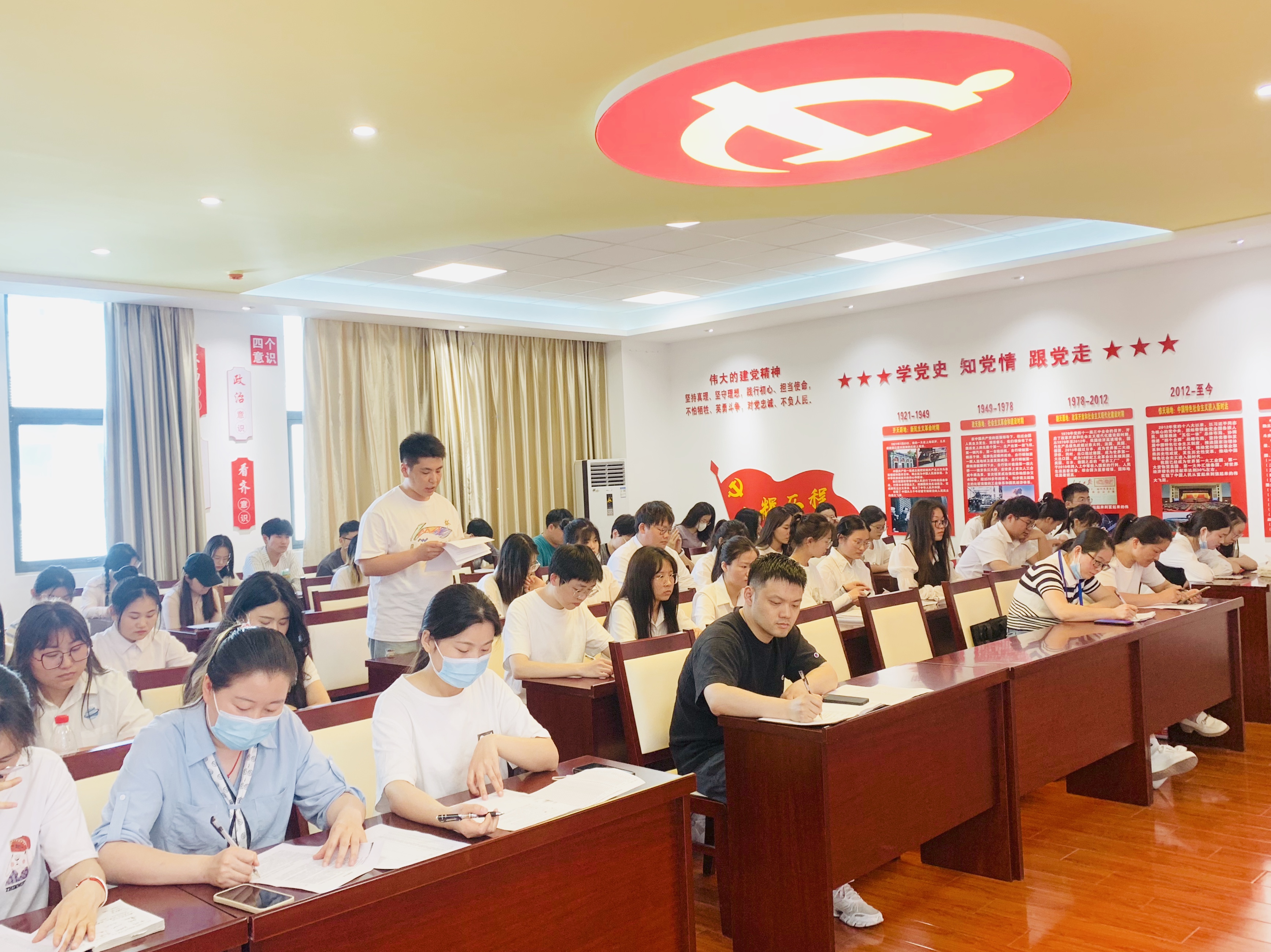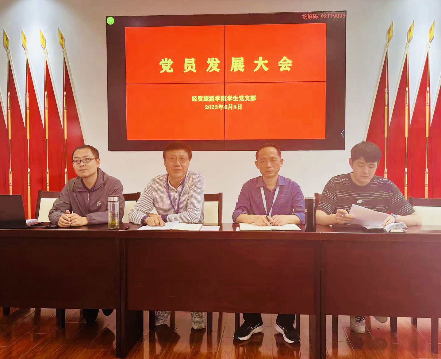 6月8日下午,伟德体育官方网站员工党支部在经贸楼党性体验馆召开预备党员发展大会,支部全体党员、发展对象和入党介绍人出席会议,会议由员工党支部书记王明明主持。