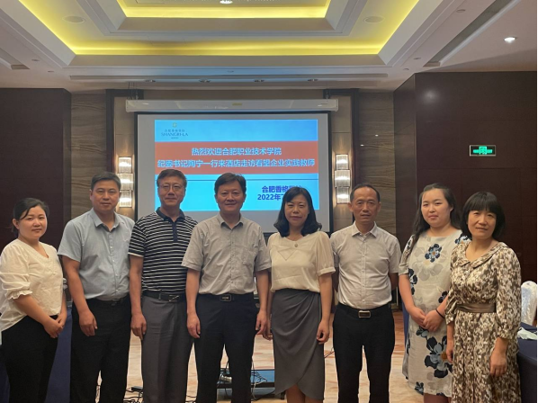 7月21日下午,公司党委委员、纪委书记陶宁带领经贸旅游公司党总支书记梅亚松,经理赵红和副经理刘圣春到合肥香格里拉大酒店看望在该酒店进行暑期企业实践的杨世河、刘娴、张珮玮、杨洋四位教师。合肥香格里拉大酒店人力资源总监刘鑫、前厅部经理方慧、人力资源部主管钱文静等热情接待了陶宁书记一行。