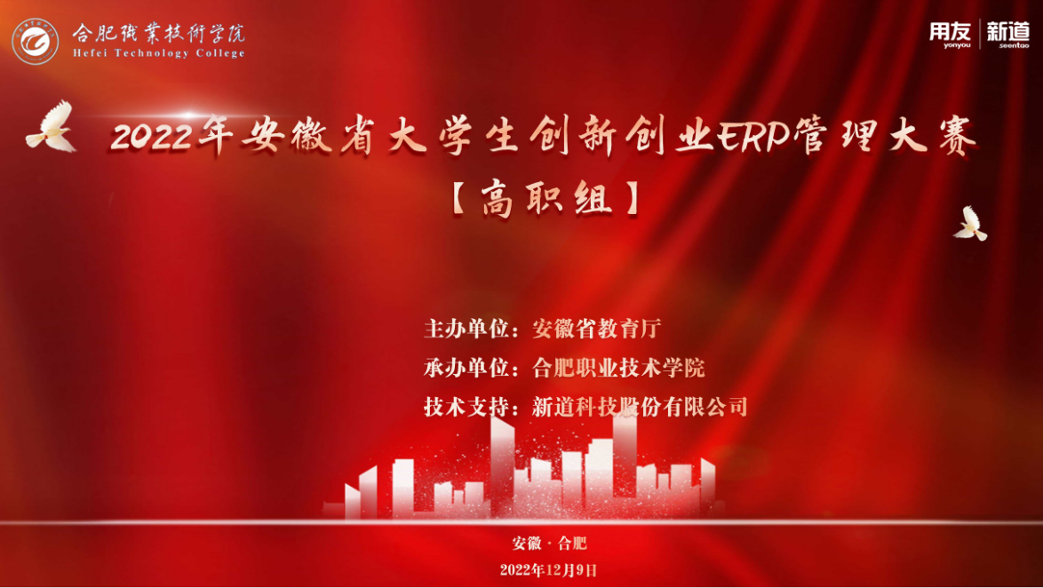 12月10日,由安徽省教育厅主办、伟德体育官方网站承办、新道科技股份有限公司提供技术支持的“2022年安徽省老员工创新创业ERP管理大赛(高职组)”在公司成功举办。比赛以线上方式进行,来自全省27所高职院校的90支参赛队伍,共计400余名师生参加此次竞赛。