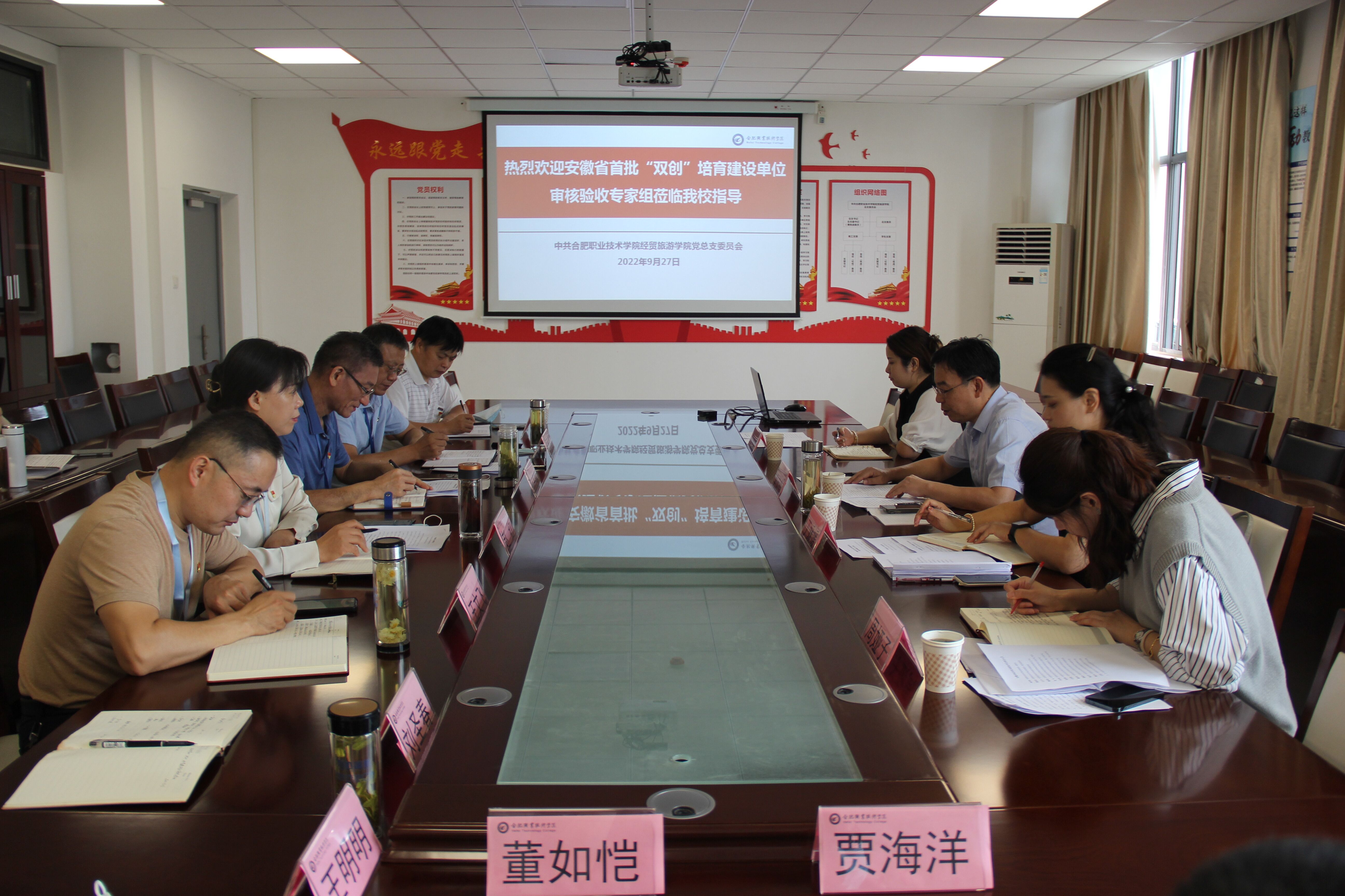 根据安徽省教育工委《关于开展全省首批新时代高公司党建示范创建和质量创优工作验收的通知》(以下简称《通知》)要求。9月27日,由安徽建筑大学党委常委、组织部长吴传运,安徽建筑大学电信公司党委副书记丁媛媛,省委教育工委组干处二级主任科员谈嘉吟,安徽建筑大学公管公司组织员周娅子组成的第三专家组对伟德体育官方网站经贸旅游公司党建标杆院系培育创建工作开展现场审核验收。公司党委委员、副董事长孙兴林,公司党委委员、组织部部长张如宝,组织部副部长王文飞,经贸旅游公司党总支委员、教师代表和员工代表参加了现场审核验收会。会议由第三专家组组长吴传运主持。