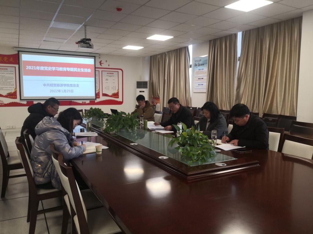2022年1月25日下午,经贸旅游公司党总支在经贸楼党员活动室召开2021年度党史学习教育专题民主生活会,会议由党总支书记梅亚松主持,公司党总支班子全体成员参加会议,公司党委委员、副董事长、第四督导组组长孙兴林到会指导,第四督导组成员王宏也参加了本次会议。