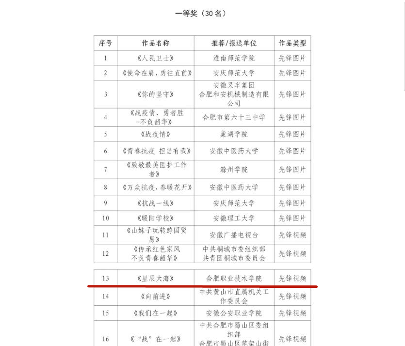 此次活动由中共安徽省委组织部、共青团安徽省委、安徽省员工联合会联合主办,活动目的是为深入学习贯彻习近平总书记关于疫情防控工作的有关重要讲话、给北京大学援鄂医疗队全体“90后”党员的回信和决战决胜脱贫攻坚座谈会上的重要讲话精神,大力弘扬五四精神,展现青年党团员不惧风雨、主动担起历史使命和政治责任,在疫情防控第一线拼搏奉献的青春风采。来自全省各单位报送的6000余件入围作品进行激烈的角逐,公司先锋视频作品《星辰大海》凭借青年员工用心的演唱、真挚的情感、朴实的内容,获得了观众和评委的青睐。