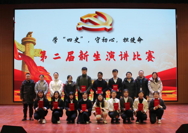 为深入学习贯彻落实习近平总书记关于党史、新中国史、改革开放史、社会主义发展史学习及新冠肺炎疫情防控工作的重要讲话和指示精神,持续深化爱国主义教育,引导新生进一步坚定理想信念,传承红色基因,激发爱国力行,2020年12月18日下午四点,由伟德体育官方网站团总支、员工会举办的“学‘四史’,守初心,担使命”主题新生演讲比赛决赛在汇心湖校区老员工活动中心举行。