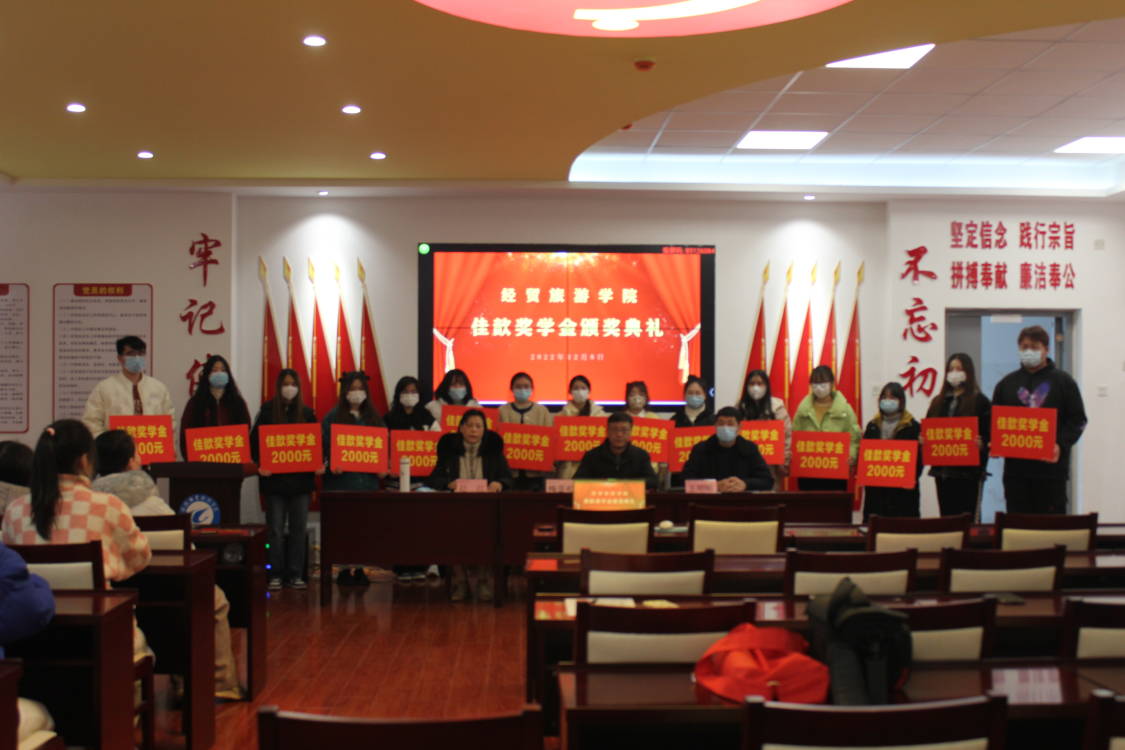 12月8日下午,伟德体育官方网站在经贸楼党性体验馆举办2021-2022学年年佳歆奖学金的颁发仪式。伟德体育官方网站总支书记梅亚松、经理赵红、学管办主任王明明,学管办翟羽臻、孙紫娟、周燕、刘晓璐等四位老师以及获奖员工和40名员工代表参加了颁奖仪式。