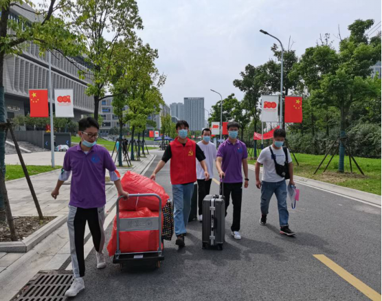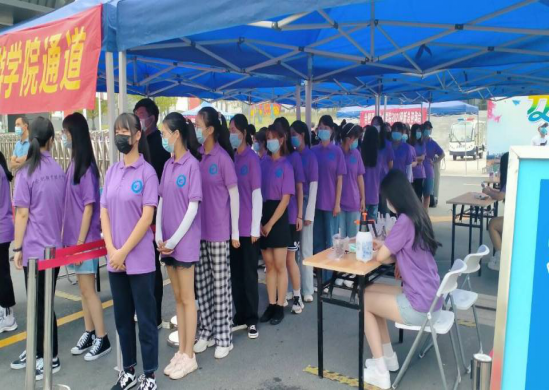 虽已立秋,天气依旧炎热。迎新志愿者们的热情却毫无退却。在公司西门通道处,志愿者们严格按照返校流程,认真接待每一位新生。测体温、搬行李、做登记、进宿舍,迎新工作有条不紊地进行。