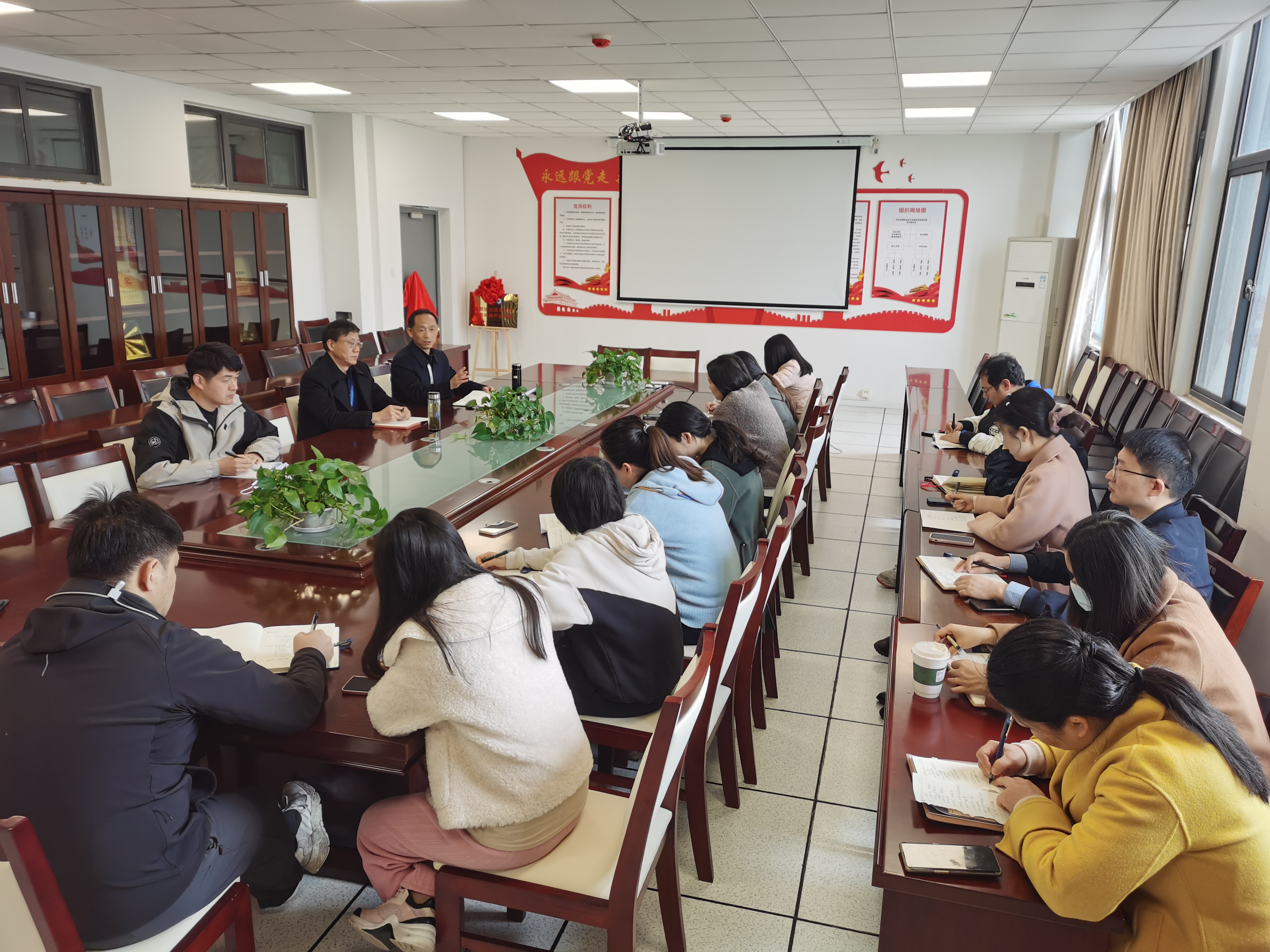 刘圣春就公司2021级员工实习工作工作作了重点提示和安排,要求全体辅导员要尽职尽责,廉洁自律,平时要深入员工群体,加强和员工沟通交流,做好员工思想动态排查工作。