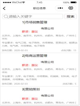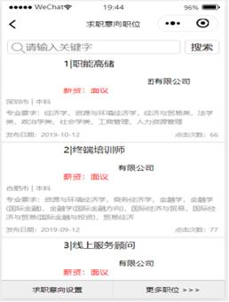 1、进入【我的】【求职意向职位】页面如图2-1所示,显示给毕业生推送的职位信息。