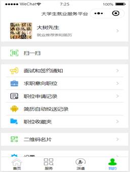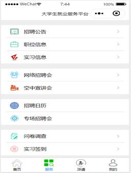 1、进入【服务】页面如图3-1所示,显示多种就业信息通道。