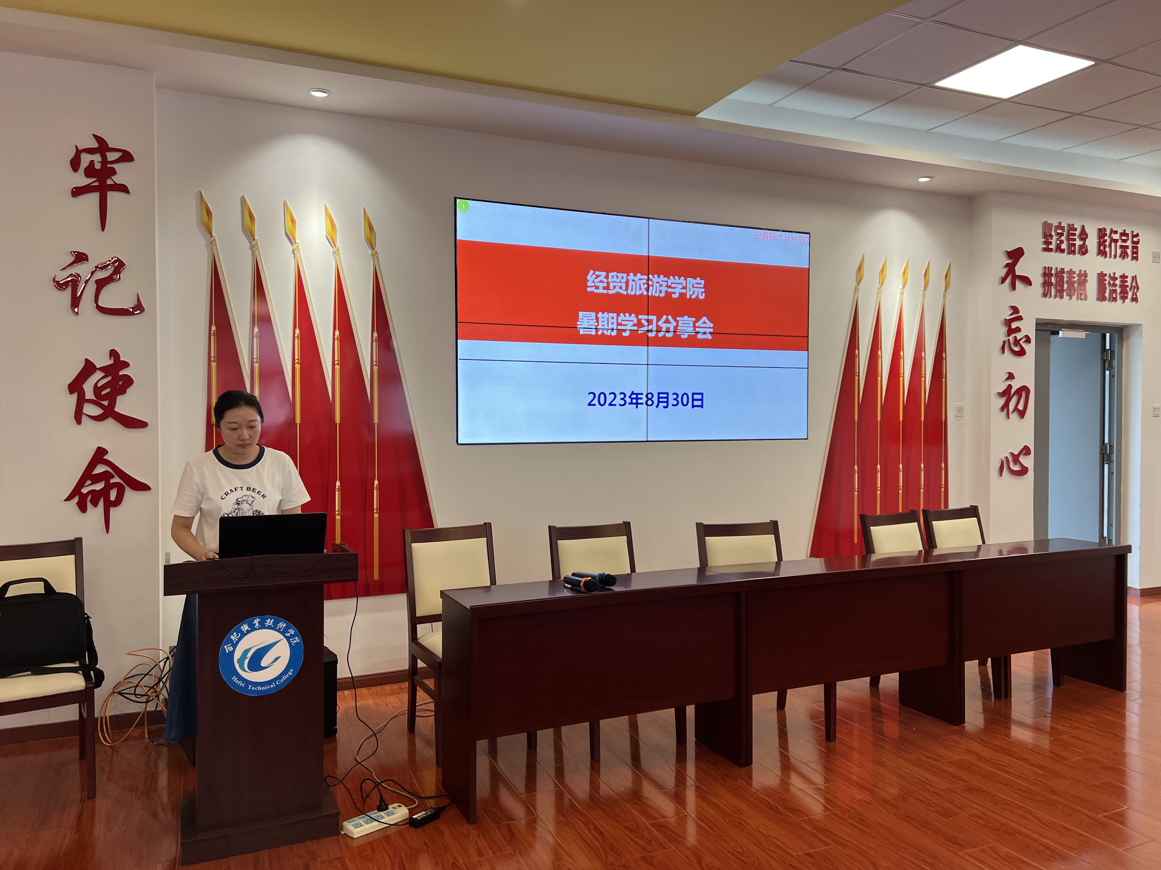 教师周云青、闫瑞阳分享了暑期赴淮北师范大学参加团队培训的经历、潘治学分享了赴企业实践的深刻体会。三位教师从培训内容回顾、培训成果展示、企业实践内容、培训或企业实践心得体会等方面向与会教职工作精彩汇报,并结合各自的暑期学习经历,分享新形势下教师如何赋能前行。