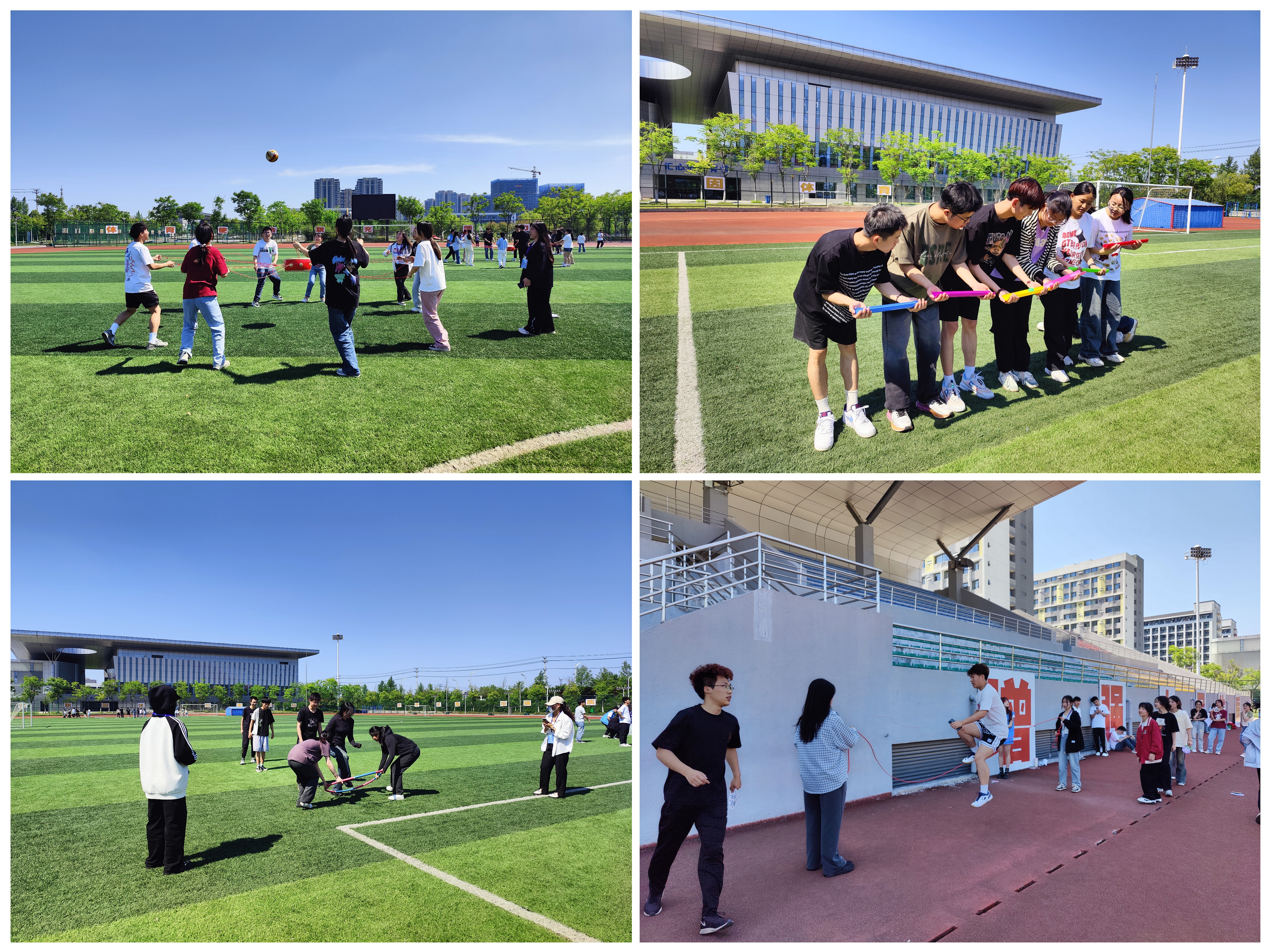 趣味心理运动会将心理健康和体育活动相结合,活动项目包括击鼓颠球、珠行万里、接力营救和绳舞炫彩等。比赛时大家全身心投入项目之中,小组成员彼此加油鼓劲,操场上不时传来同学们的欢笑声;在蓝天白云的映衬下,同学们的身影与操场绘成了一张张青春活力的画卷。