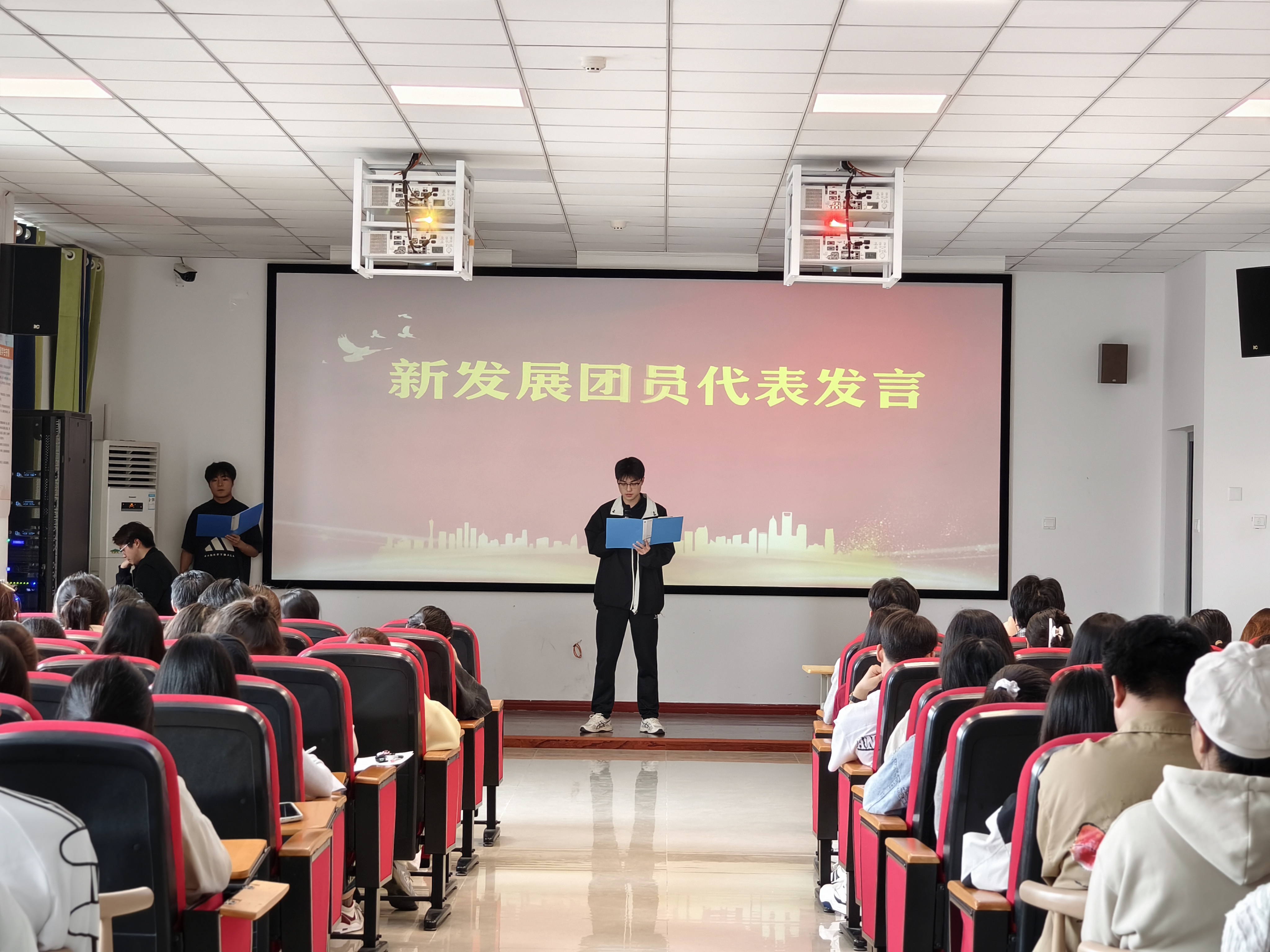 24级大数据与会计专业班吕尹龙作为新团员代表发言。他满怀激情地表达了对共青团组织的向往与热爱,他表示,将会珍惜团员身份,以更高的标准要求自己,积极参与团学组织活动,引领带动身边其他青年员工更多加入公司各项活动和工作中。