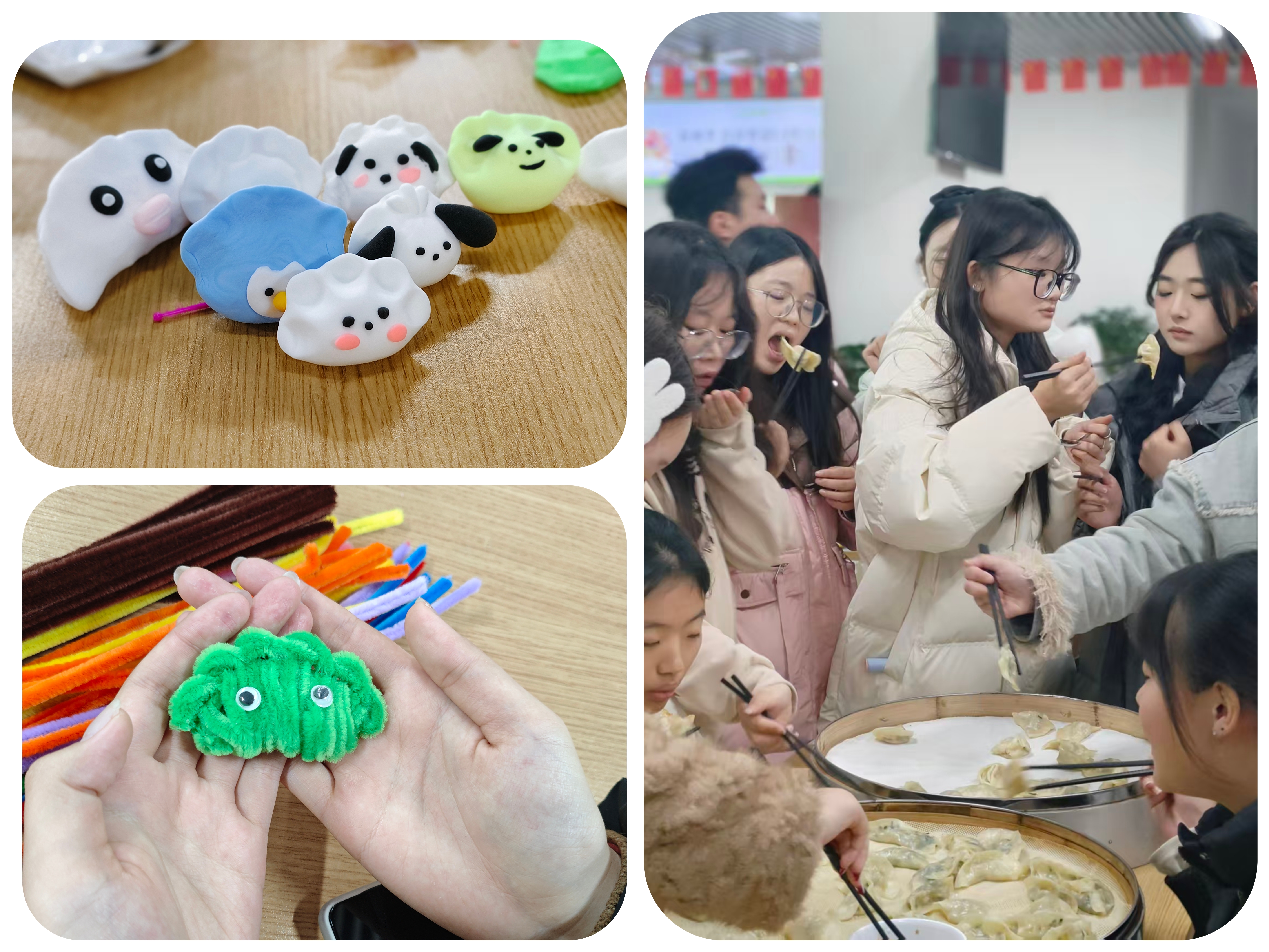 活动期间,同学们纷纷分享自己的真切感受。旅游管理专业的谢欣悦捧着刚出锅的饺子笑着说:“第一次和这么多同学一起包饺子,虽然包的形状歪歪扭扭,但吃着自己亲手包的饺子,感觉特别香!离家这么远,能在公司过这么有氛围的冬至,真的很温暖。”刚完成扭扭棒“饺子”手作的赵文君同学也表示:“平时总待在宿舍里,这次活动不仅让我体验了手工创作的乐趣,还认识了不少新朋友。”