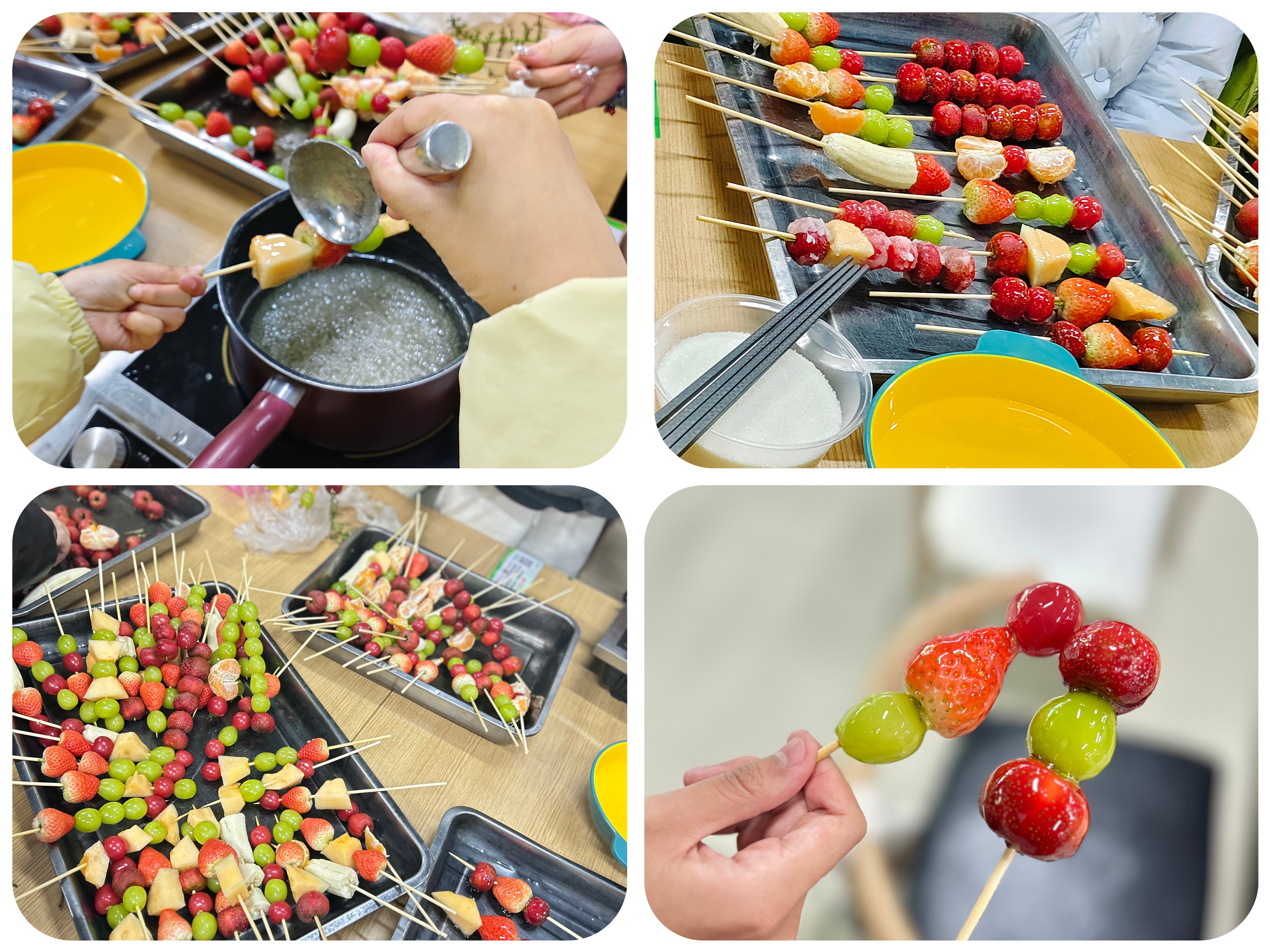 活动现场热闹非凡,处处洋溢着欢声笑语,同学们热情高涨、踊跃参与,沉浸式体验冬至民俗的独特魅力。“饺香暖冬”环节中,公司联合食堂开展手工包饺子、DIY糖葫芦活动。案板前,同学们分工协作,揉面、擀皮、包馅一气呵成,形态各异的饺子摆满托盘;熬糖、串果、裹糖衣的操作台前,大家相互讨教技巧,酸甜酥脆的糖葫芦很快新鲜出炉。现包现煮的饺子热气腾腾,咬上一口暖意直达心底;酸甜可口的糖葫芦甜入舌尖,让同学们在美食中品味冬日幸福。