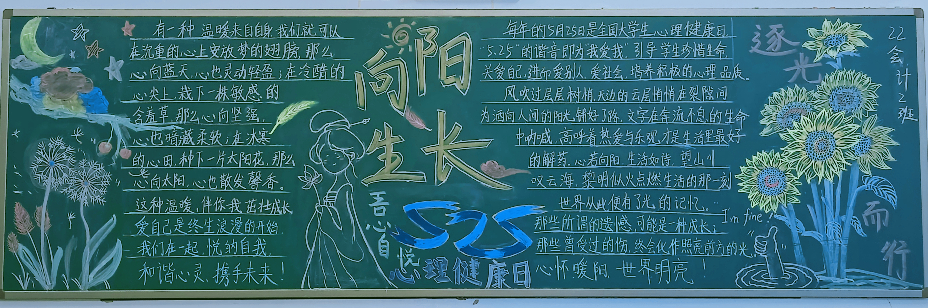 为了更好地宣传普及心理健康知识,让员工树立正确的心理健康观念,努力提高员工心理自我调节能力。5月15日至28日,伟德体育官方网站在2022级各班级开展了“心向阳光,青春绽放”为主题的心理健康教育主题黑板报评比活动。