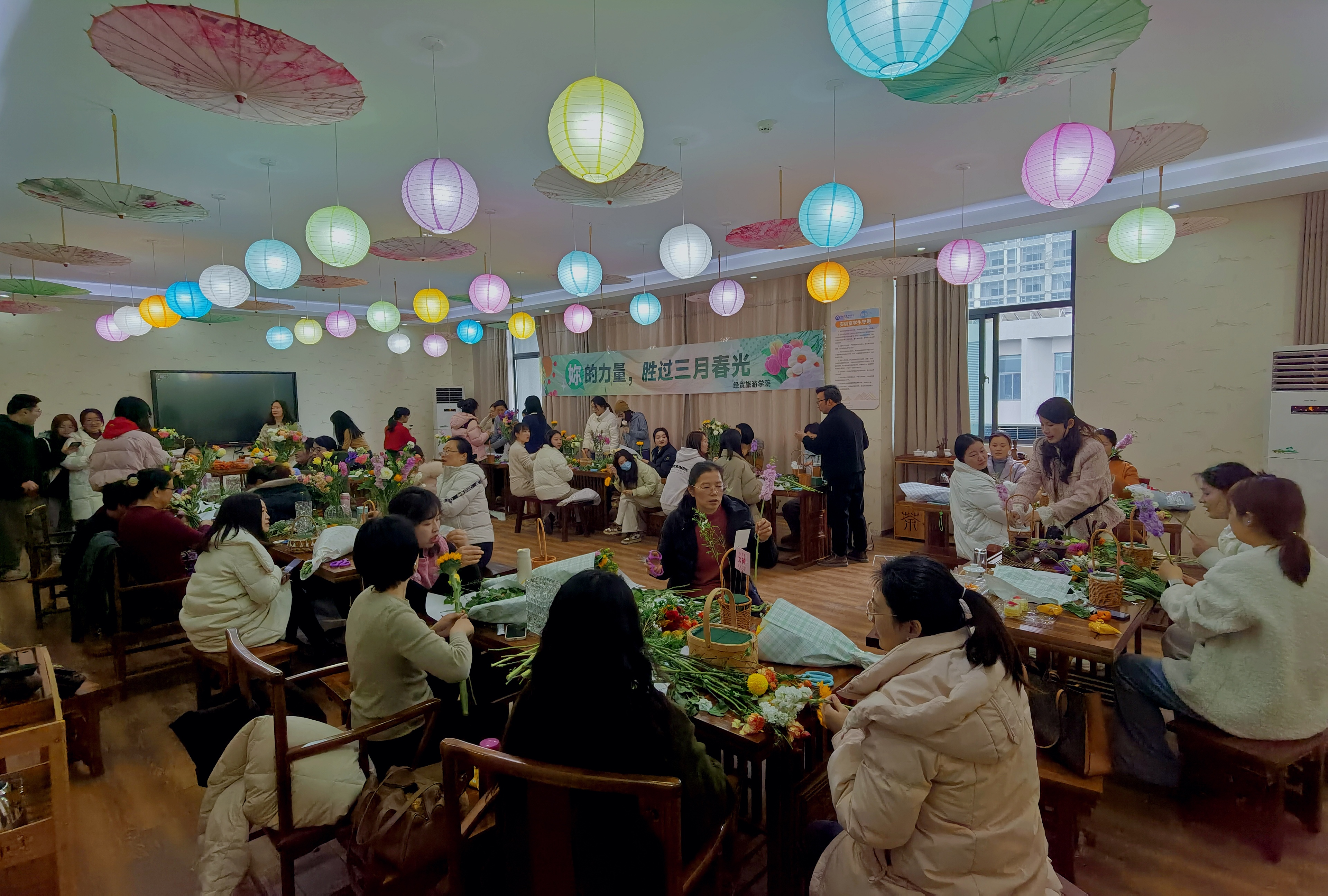 品茶、插花、交流,释放工作生活压力,共享艺术之美。为庆祝"三八"国际劳动妇女节的到来,3月5日下午,伟德体育官方网站分工会在茶艺实训室举办主题花艺手作活动。公司党政班子到场祝贺,40余名女教职工共赴春日花事,以花为媒共享节日祝福。