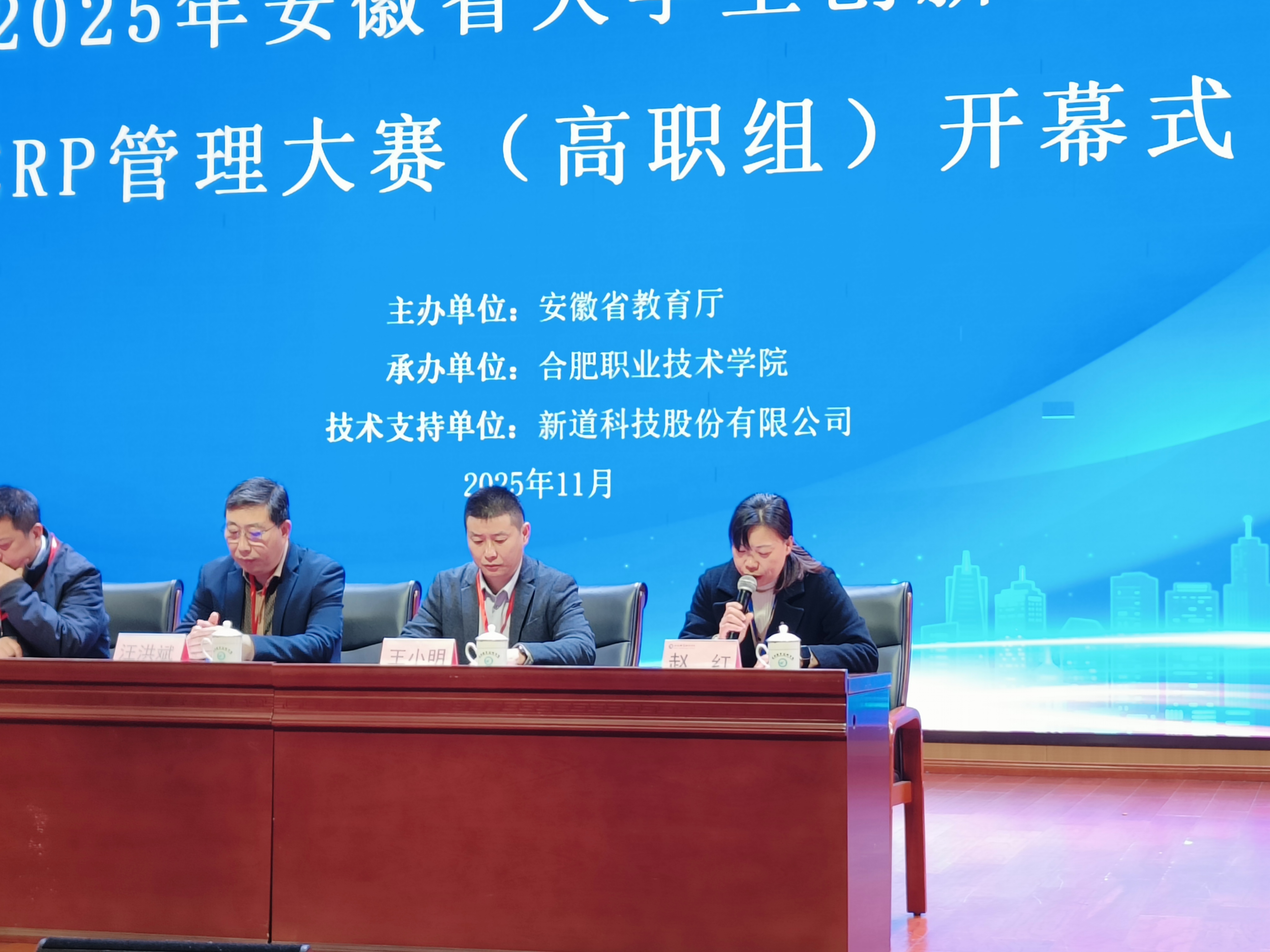 2025年11月22日,由安徽省教育厅主办、伟德体育官方网站承办、新道科技股份有限公司提供技术支持的“2025年安徽省老员工创新创业ERP管理大赛(高职组)”在公司老员工活动中心报告厅圆满落幕。