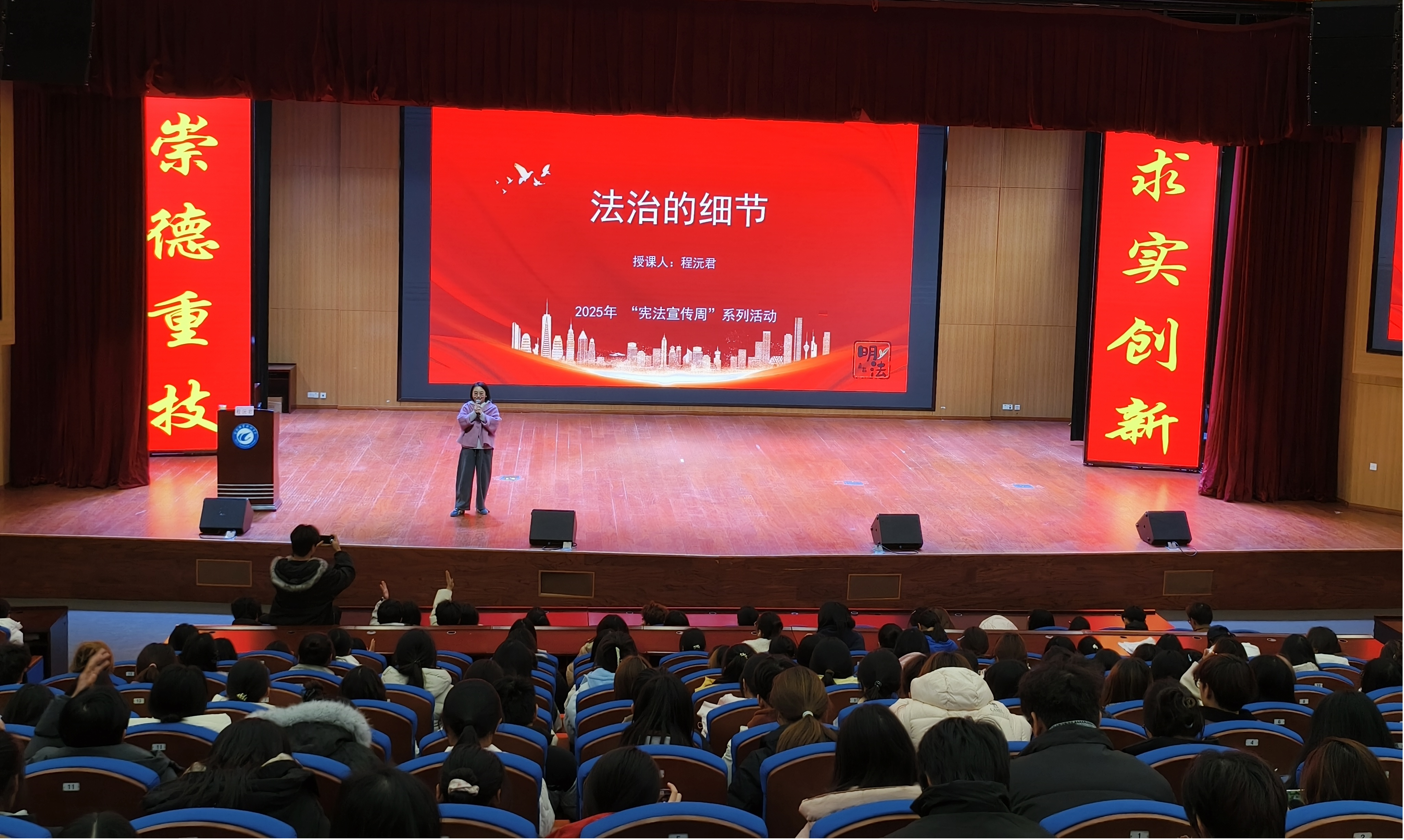 在我国第十二个国家宪法日及第八个“宪法宣传周”来临之际,为深入学习宣传贯彻习近平法治思想,推动宪法精神浸润青年心田,12月3日,伟德体育官方网站特邀汽车应用与轨道交通公司辅导员程沅君老师开展“尊宪崇法 护航成长”专题普法讲座。公司师生代表齐聚现场,共学宪法知识、共悟法治精神。