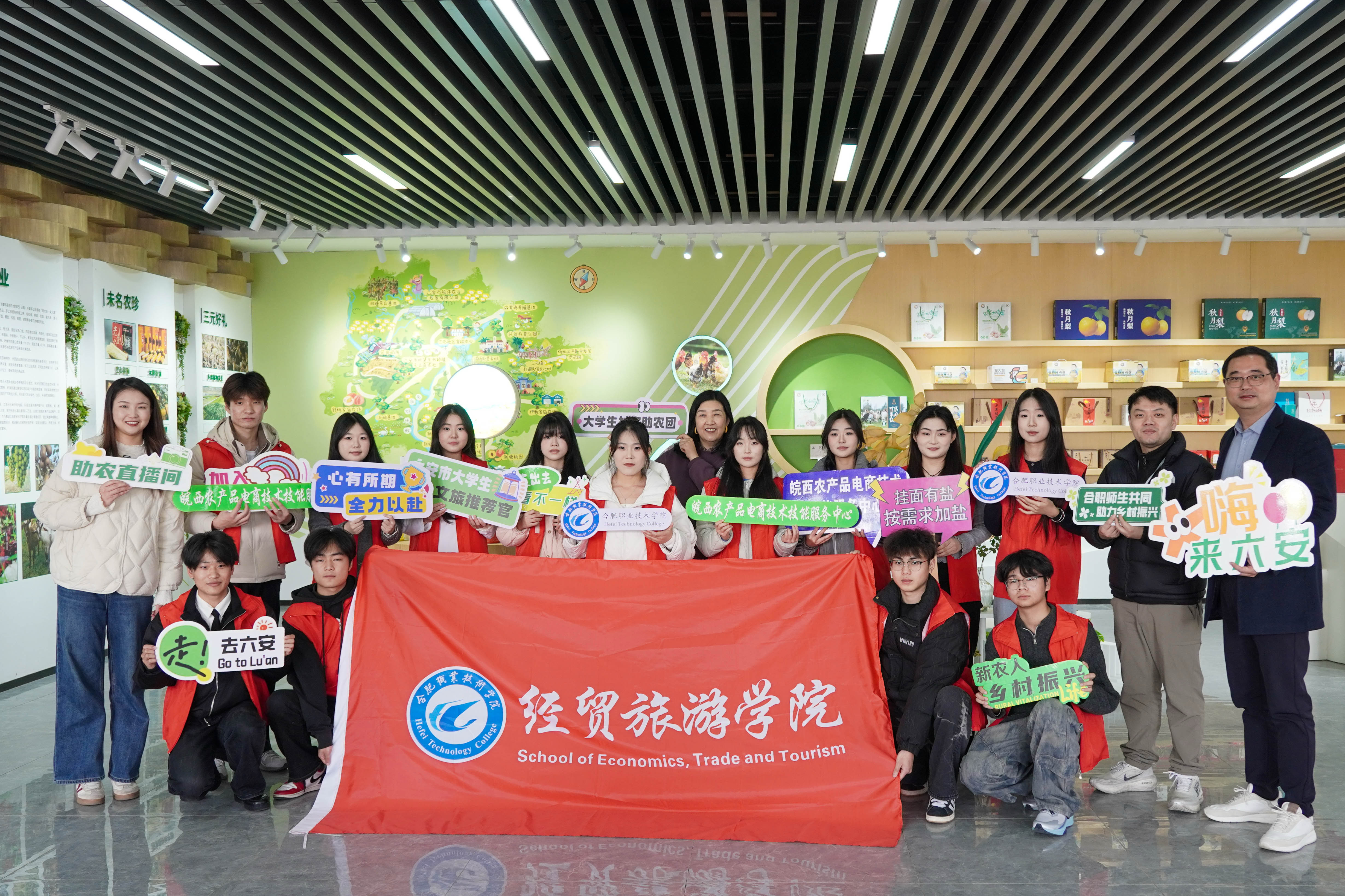 为深化产教融合、赋能乡村振兴,12月16日,伟德体育官方网站受邀组织电商专业师生团队16人赴六安市叶集区三元镇,参加第五届电商直播带货大赛系列活动,引导员工在实践中锤炼专业技能,以电商力量助力地方特色产业发展。