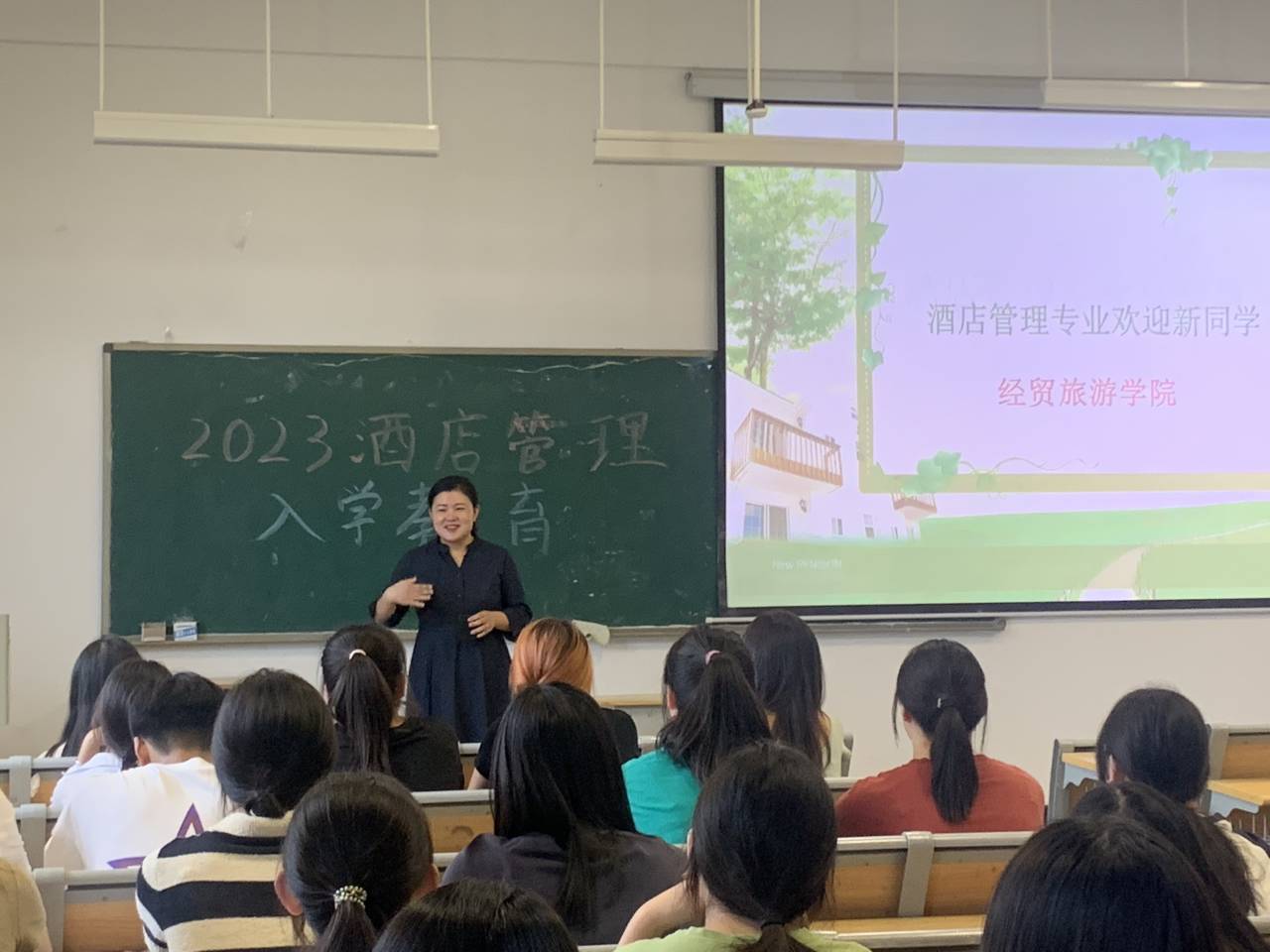 旅游管理教研室姚启芳付教授在汇心湖校区南教学楼108教室为23级旅游管理专业新生作了《旅途万里伴你行,游迹千载系深情》的入学思想教育。姚老师分别从团队队伍、校内外实训基地、职业技能竞赛、员工风采、专升本情况等方面对专业情况进行详细介绍,其热情而充满亲和力的讲授,感染了在座的每一位同学,增强了同学们的自信心及对专业的无限憧憬和向往。整个过程,在场同学都听得津津有味。最后姚老师帮助同学们进行了大学学习规划的制定,明确目标,砥砺前行,并预祝同学们大学期间成绩优异,成果丰硕。