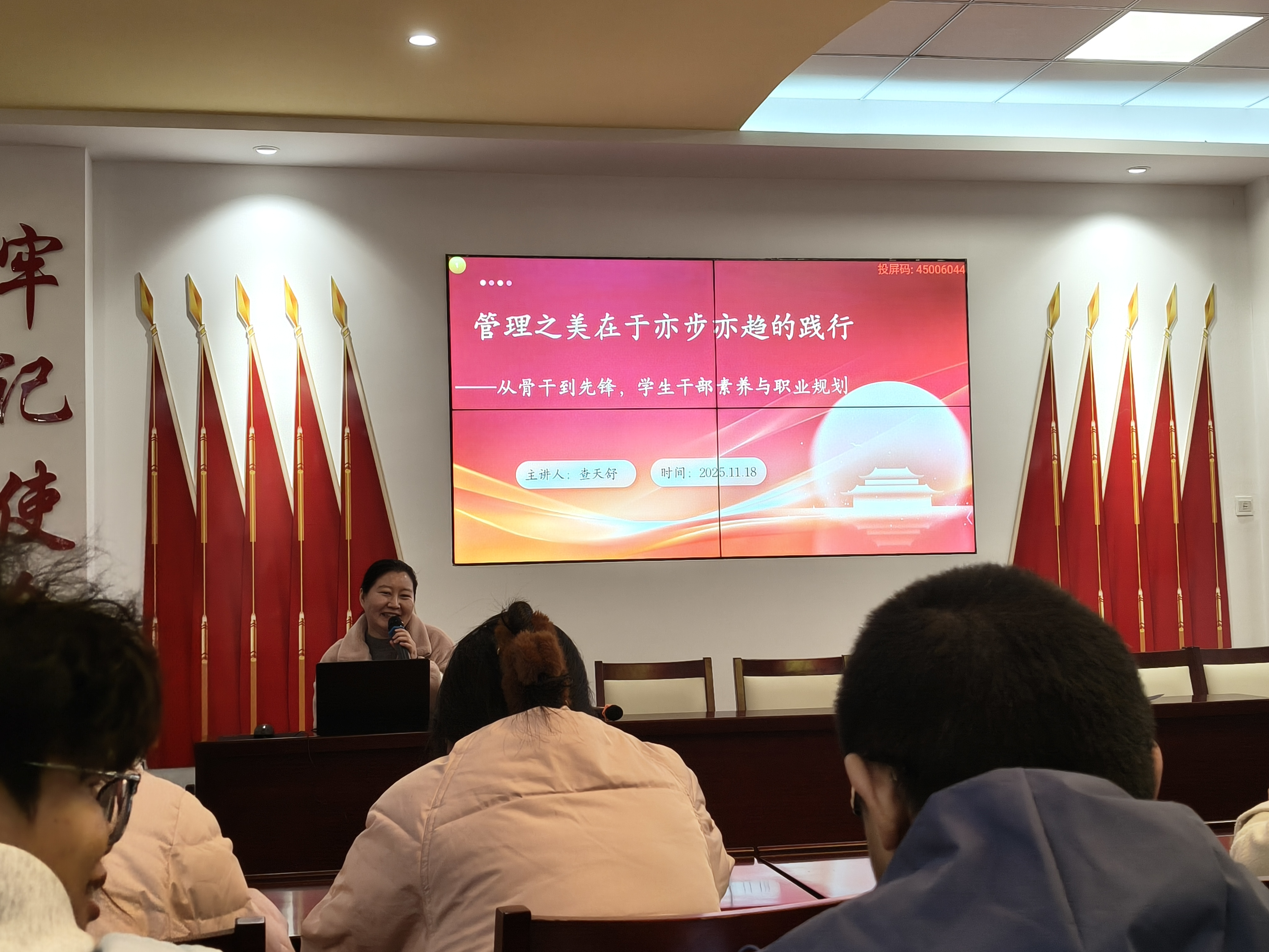 培训围绕“课堂讲座+交流讨论+实践锻炼+成效检验”四位一体能力素养展开,内容涵盖文明班级创建、党员发展、奖助政策、学历提升、就业创业、心理健康等多个方面,旨在增强员工干部的组织纪律性、团队协作意识和全局观念,提升其服务同学、助力公司发展的能力。