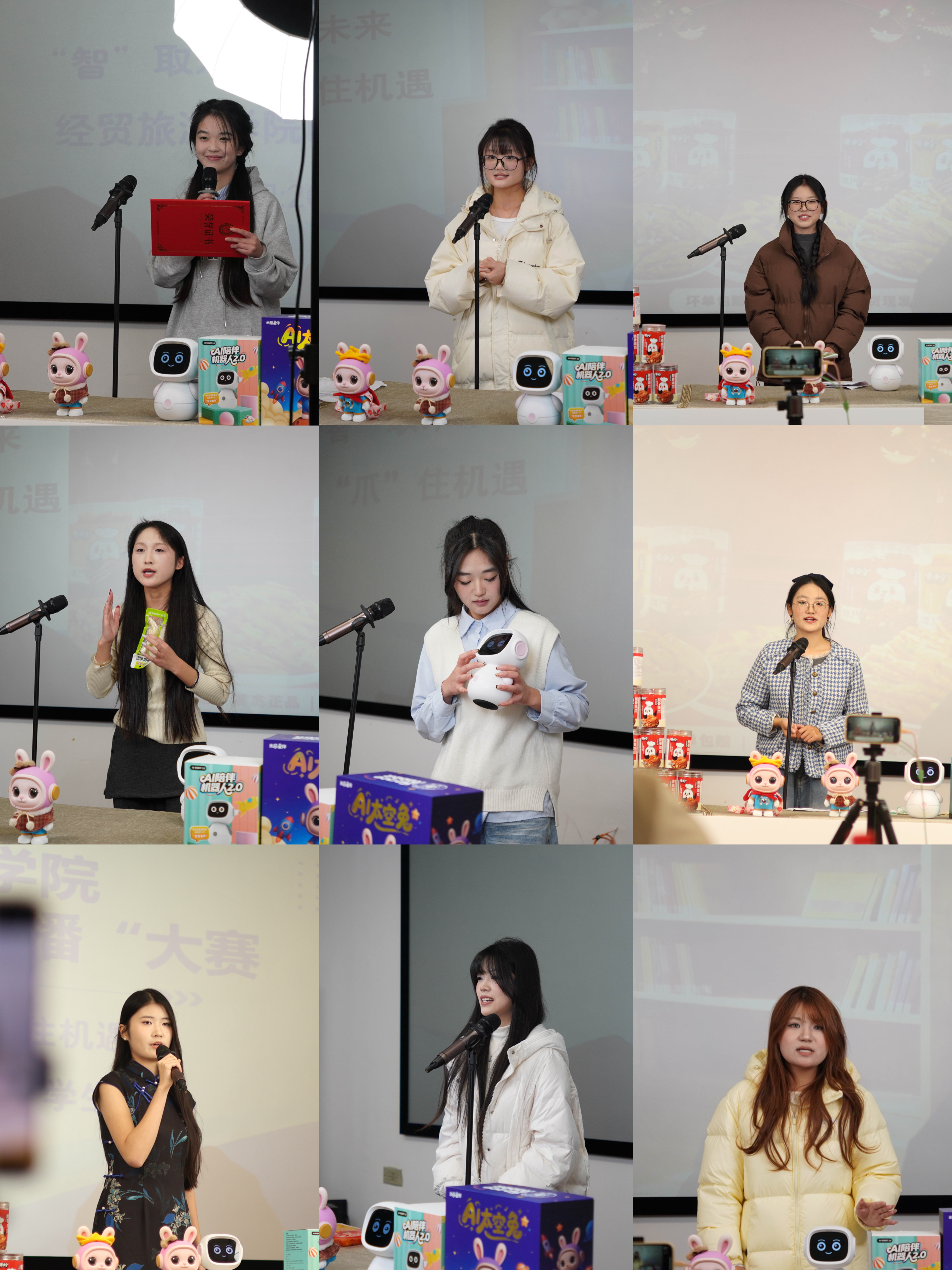 比赛正式开始,各参赛选手围绕产品,借助精心准备的直播话术设计,为观众们带来了一场场精彩纷呈的直播展示,展现了新时代经贸学子的创新思维与实践能力。评委老师们从专业角度出发,依据创意性、可行性等多项标准进行综合评分。整场比赛节奏紧凑、亮点纷呈,充分展现了参赛选手的创新活力与实干精神。