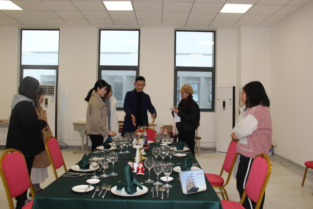在西餐实验室里,专家从下午两点开始对参赛选手进行指导,对比赛中的竞赛规程:西餐宴会摆台、英语台面主题介绍、西餐服务、鸡尾酒调制等进行一一示范讲解;对选手从进场、摆台、拿酒、示酒、调酒,离场等整个比赛过程中容易犯的错误及注意事项不断地进行提醒和纠正;在指导过程中对员工提到的问题及时进行讲解并让员工模拟训练,直到员工明白为止。整个指导一直持续到五点,历经三个小时。通过专家指导,参赛选手纷纷表示:对比赛规程更熟悉了,思路也更清晰了,比赛信心也倍增。